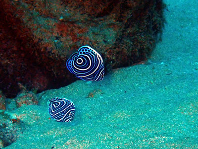 タテジマキンチャクダイ幼魚の縄張り争いや