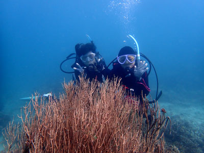 水面休息中やアフターダイブは昔話に花も咲きのお二人と