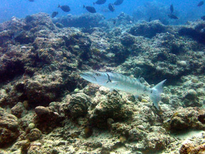 浅い所に帰ってきたときにはバラクーダの老成魚や