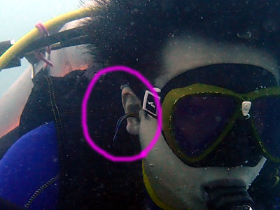 じ~っとお魚観察をしているとホンソメワケベラの子供がK田さんの耳掃除はじめました