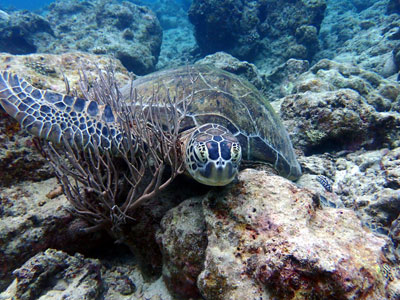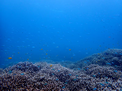 ワイドな感じではカメさんやサンゴ&デバスズメダイたち