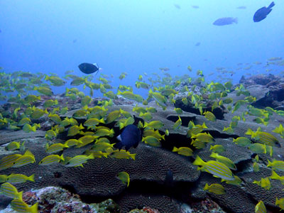 ベタ凪でリーフが見えない船長泣かせなコンディションダイビングにはもってこいなんですけどね(^^; ゲストは最終日のH野さん お一人なのでご本人のお好みダイビングへ ヨスジフエダイの根やショウガサンゴのトロピカルな感じがとってもキレイ 小さな... -